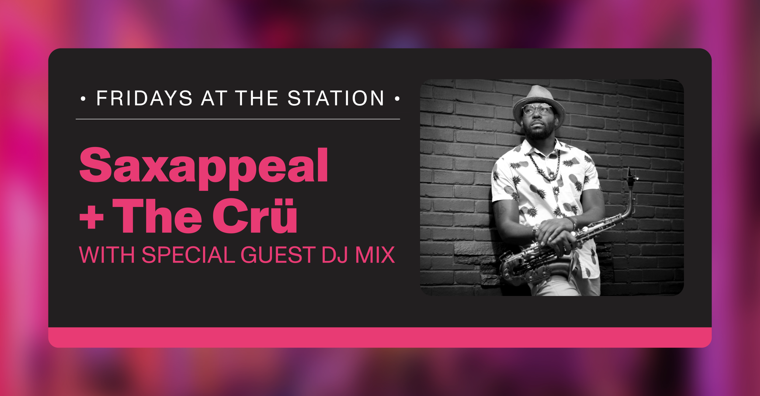 Whether you’re celebrating Valentine’s, Galentine’s, or you need a cozy spot to unwind, February’s Fridays at The Station is for you. Special guests Saxappeal and The Crü set the mood with the sweet sounds of R&B love songs we grew up singing, while DJ Mix keeps the energy flowing between sets.