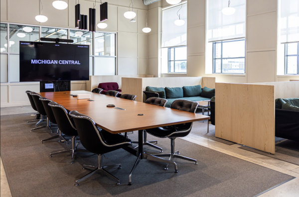 The Boardroom in the Newlab at Michigan Central building and The Retreat on The Mezz in The Station both offer a suite of flexible spaces for meetings and work sessions. Each features a large conference room with the option for breakout rooms, snack bar, and collaboration with the Michigan Central and Newlab teams to design and facilitate custom workshops.